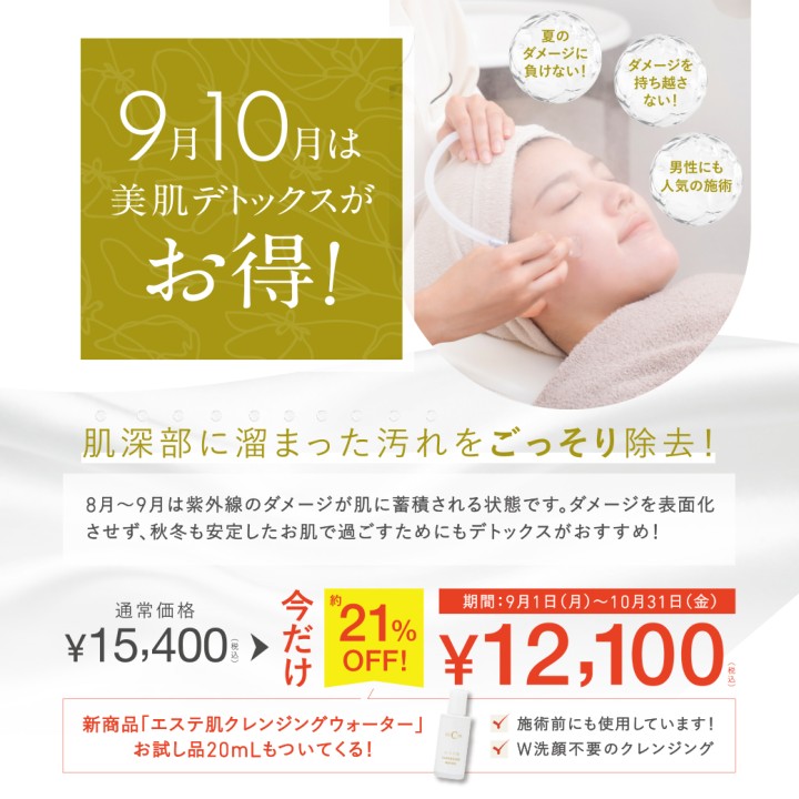 ぜひこの機会に美肌デトックスをお受けくださいませ。