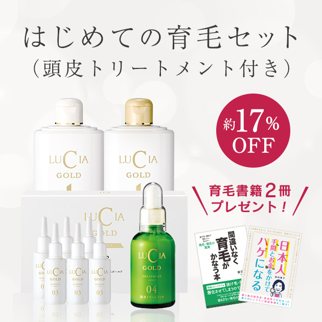 83,600円→69,800円ゴールドシリーズをはじめてご購入の方限定価格!ゴールドシリーズのシャンプー・コンディショナー・育毛エッセンス・頭皮トリートメント・育毛本2冊のお得な6点セットです。