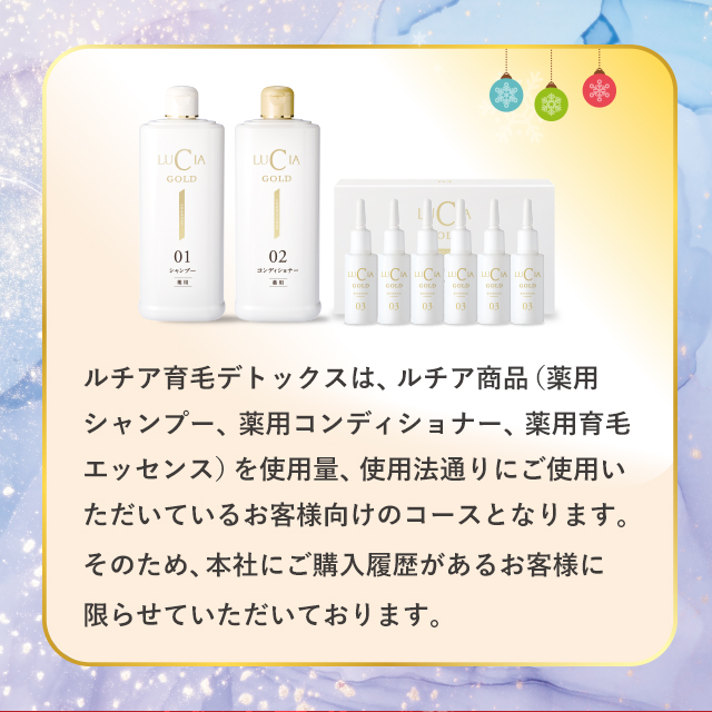 トップ 製品情報|商品一覧 クリスマスキャンペーン2025 ルチア育毛デトックス<50分> 特割チケット【20%OFF】